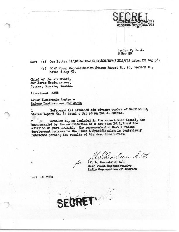 Section 10 is modified, and Class A tentatively retracted. F.L. Bernstein W/C was the RCAF Plant Rep for RCA
