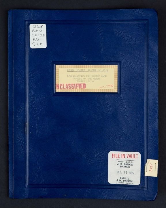 Arrow escape system RD. 84.A. Specification for rocket sled testing of the Arrow escape system