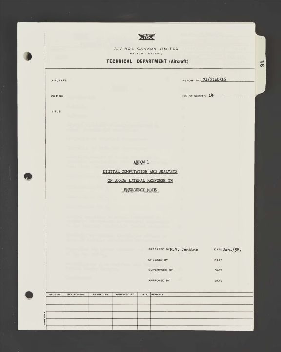 Date / Time Period: 1958-Jan Pages: 14 Author: M.N. Jenkins Publisher: Avro