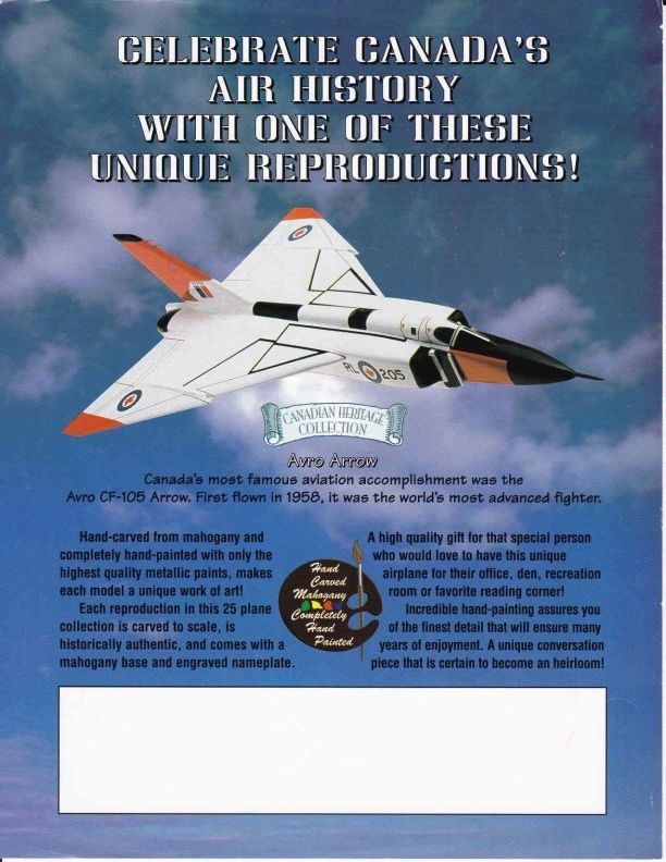 Ad for hand carved mahogany Arrow models