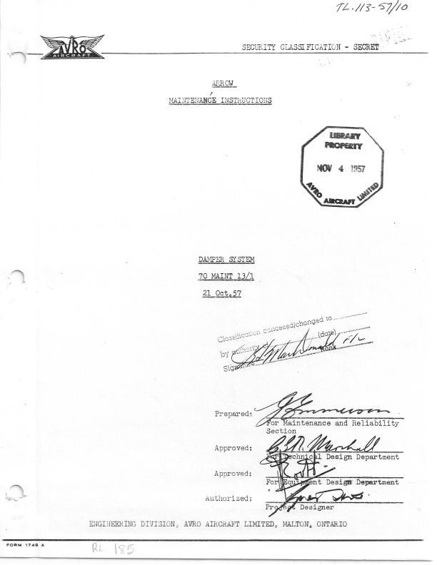Arrow Maintenance Instructions; Damper System. Report approved by C.G.N. Marshall & Mr. Booth