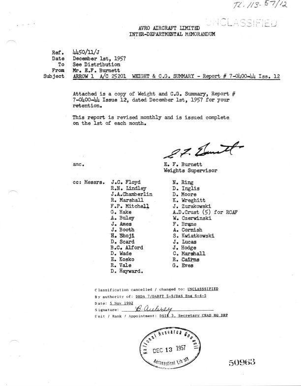Arrow MK 1 Weight & C.G.Summary, Issue 12