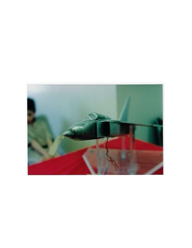 Color Photo of Small Scale Wind Tunnel Model of Arrow on a Pedastal