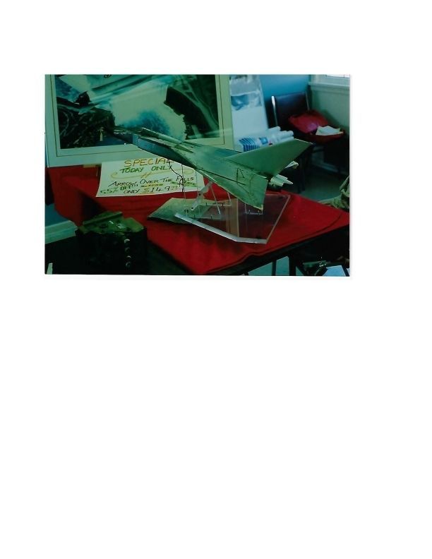 Color Photo of Small Scale Wind Tunnel Model of Arrow on a Pedastal