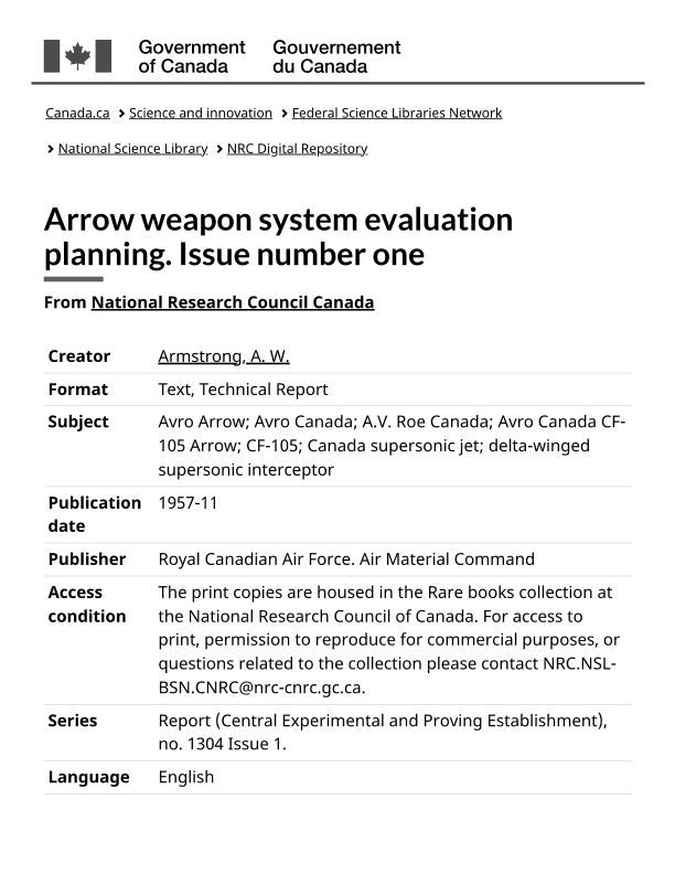 Arrow weapon system evaluation planning. Issue number one
