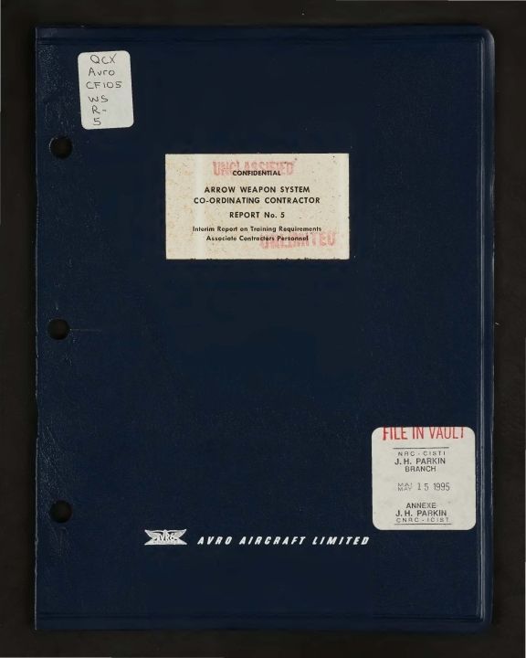 Arrow Weapons System Co-ordingating Contractor Report No. 5 Interim report on training requirements associate contractors personnel