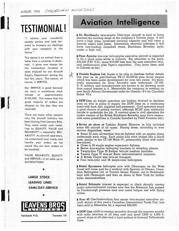 Orenda Engines Ltd - Orenda hopes to disclose details on the PS13 tentatively earmarked for the CF-105, and sell Orenda 14's to South Africa - pg. 3Publication Details
