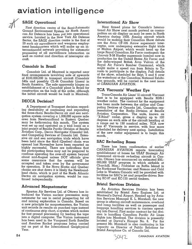 pg 84 Sage Operational. International Airshow - CF-105 planned to debute at the 1958 Canada's International AirshowPublication Details