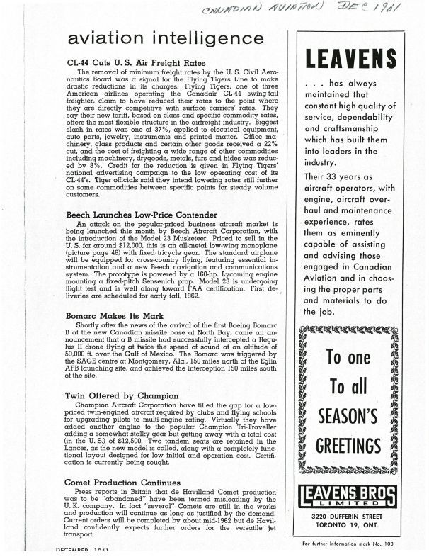 Bomarc Makes Its Mark (intercepts a drone in US at 50,000ft)