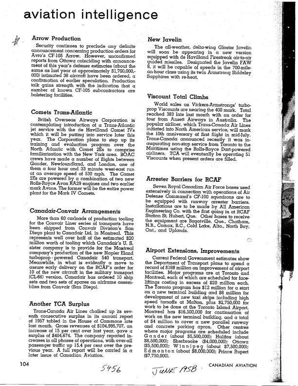 pg 104 Arrow production - Reports of 38 aircraft being ordered, and subcontractors expandingPublication Details