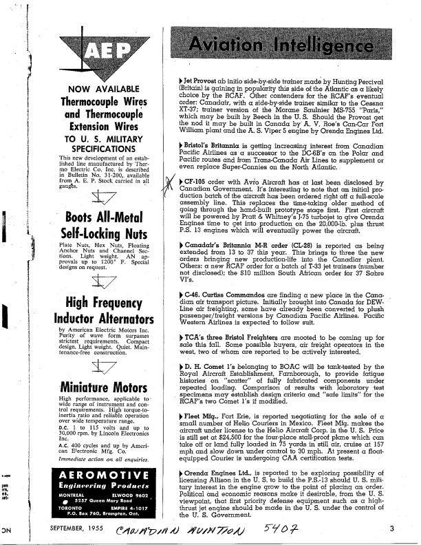 pg 3 CF-105 - order with Avro Aircraft has been disclosed. Orenda Engines Ltd - reported to be exploring possibility of licensing Allision in the US to build the PS-13 (Iroquois) should US military wish to orderPublication Details