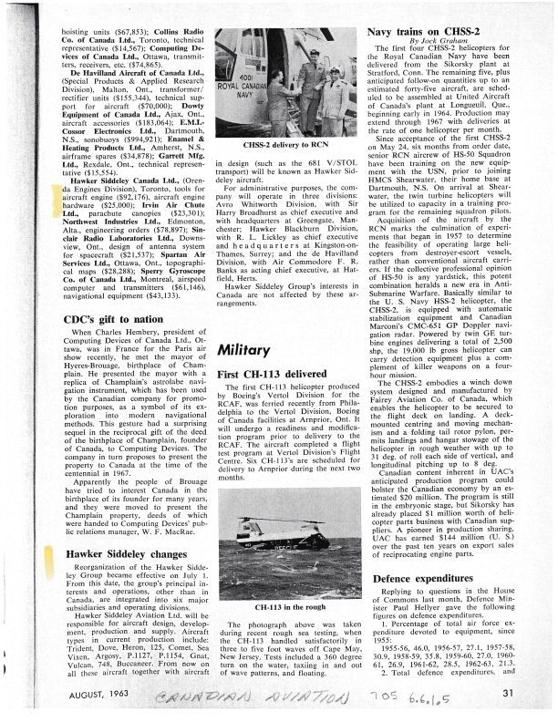 pg 31 Defence Contracts - Orenda contracts. Hawker Siddeley changes Hawker UK reorgPublication Details
