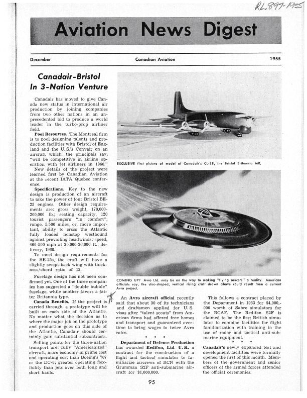 pg 95 Avro staff offered double wages to move to the US. Coming up - image of Avro Saucer (WS 606A)Publication Details