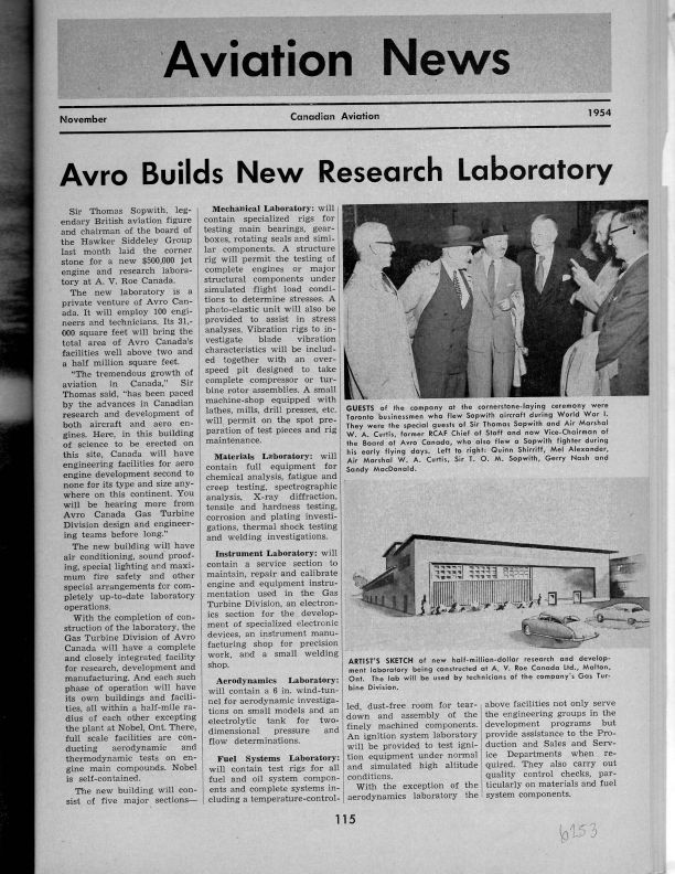 Pg 115 - Avro Builds New Research Laboratory - Article about building a new lab for jet engines at Malton