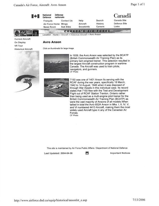 Date / Time Period: 2006 Pages: 2 Publisher: Airforce, DND