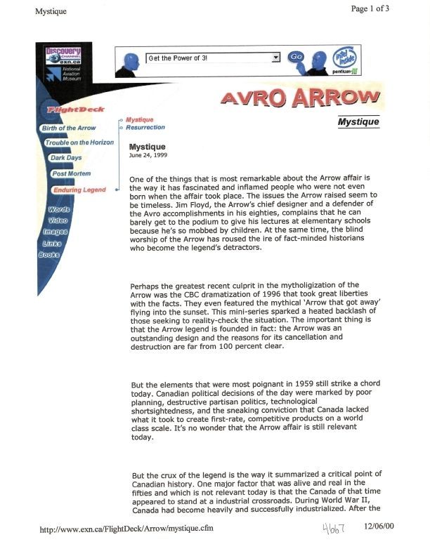 discusses how the Arrow has fascinated and inflamed people not even born when the Arrow existed.