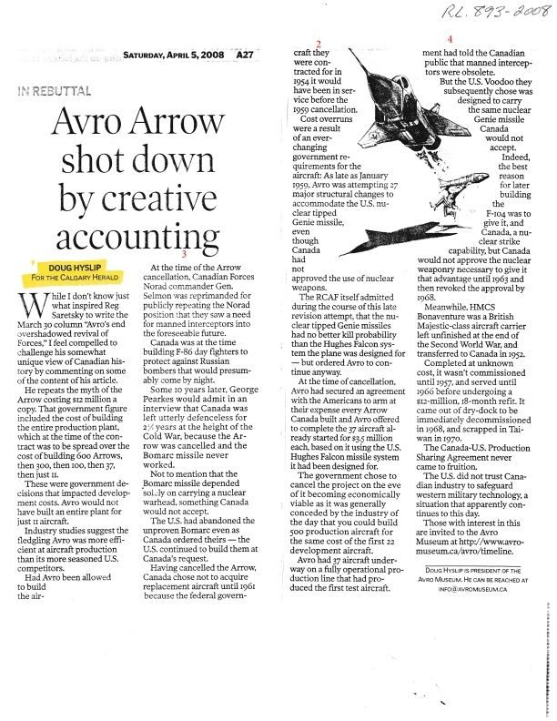 Avro Arrow shot down by creative accountingEntry/Object ID