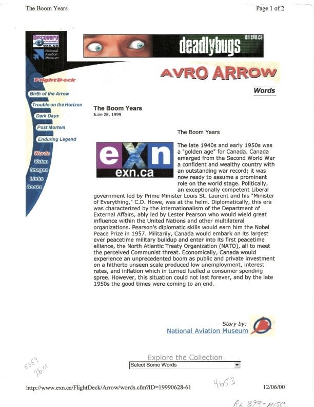 Date / Time Period: 12/6/00 Pages: 1 Author: National Aviation Museum Publisher: Discovery Channel / exn.ca