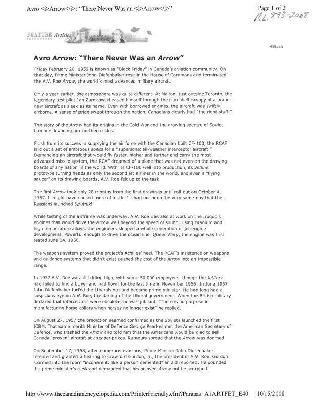 The Arrow story in brief
