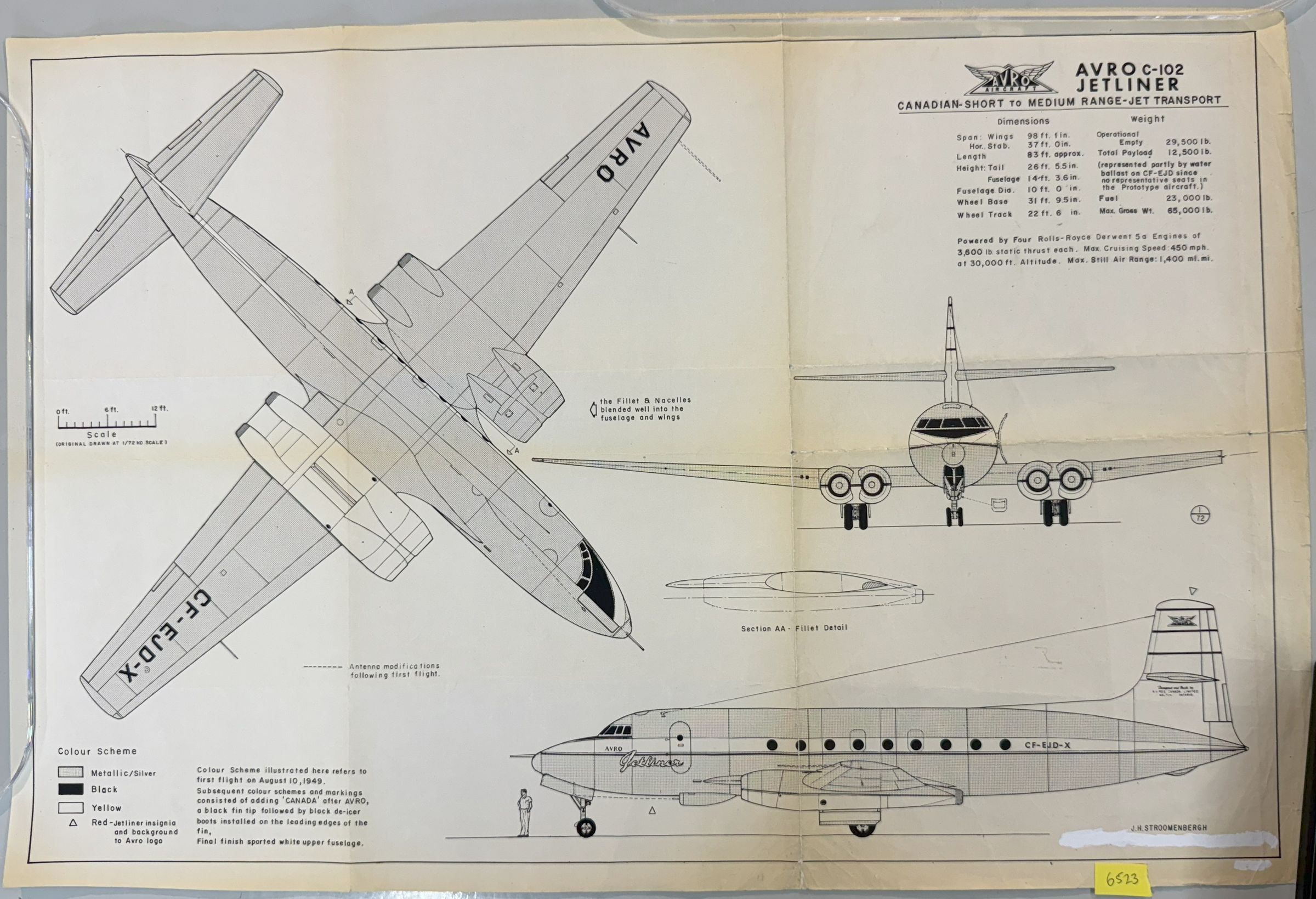 3 view of the Jetliner - printed on poster paper with lots of liquid paper applied