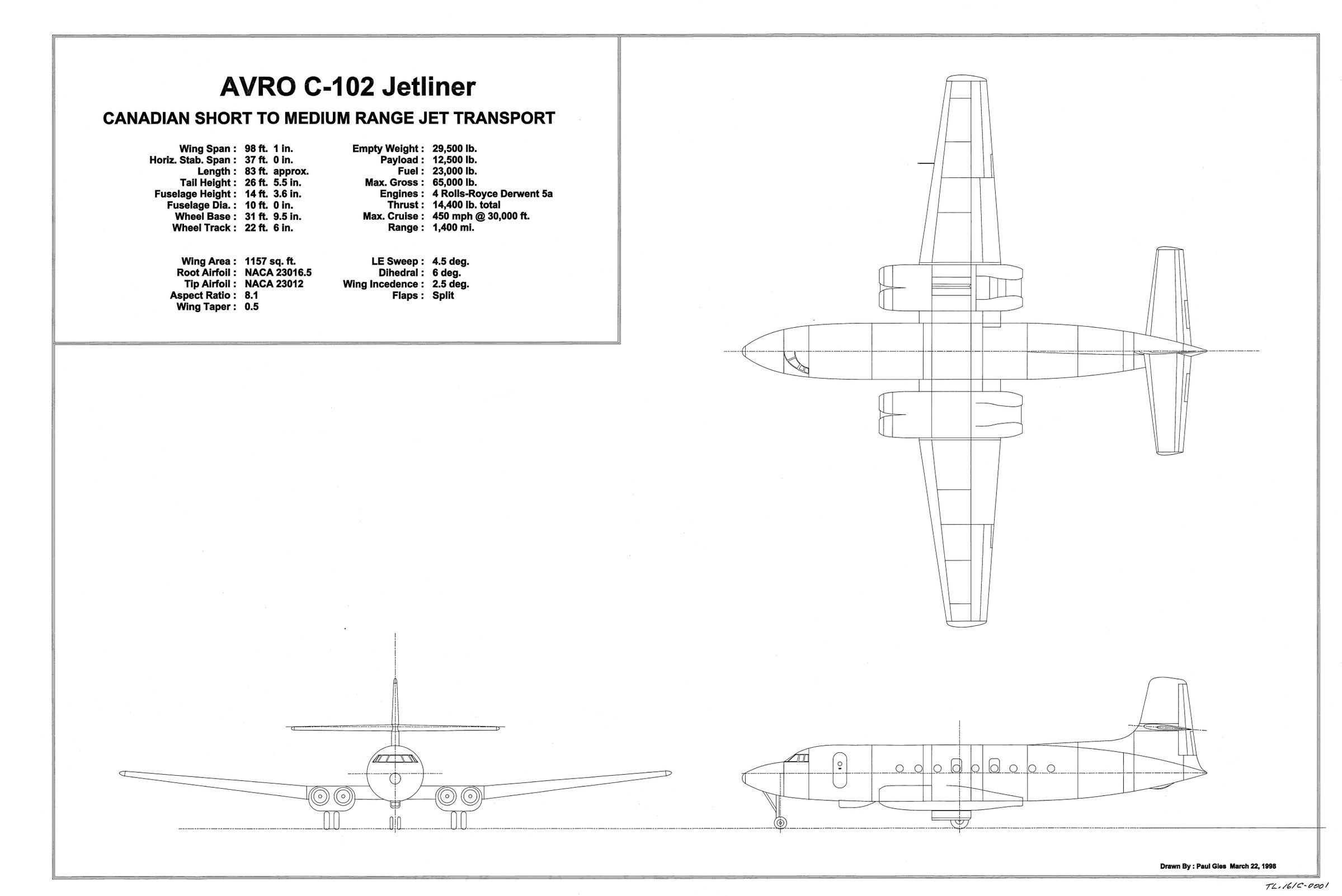 Avro C-102 Jetliner, Canadian short to medium range jet transport - created 3/22/1998Entry/Object ID