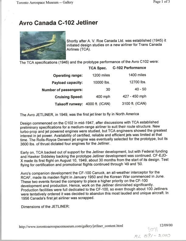 Date / Time Period: 2000 Pages: 2 Publisher: Toronto Aerospace Museum