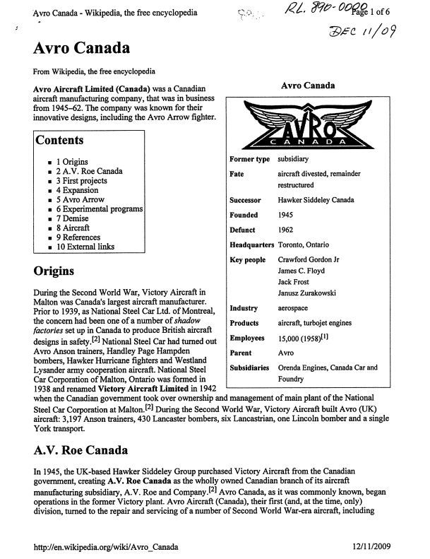 Avro Canada - Wikipedia from Dec 11/2009