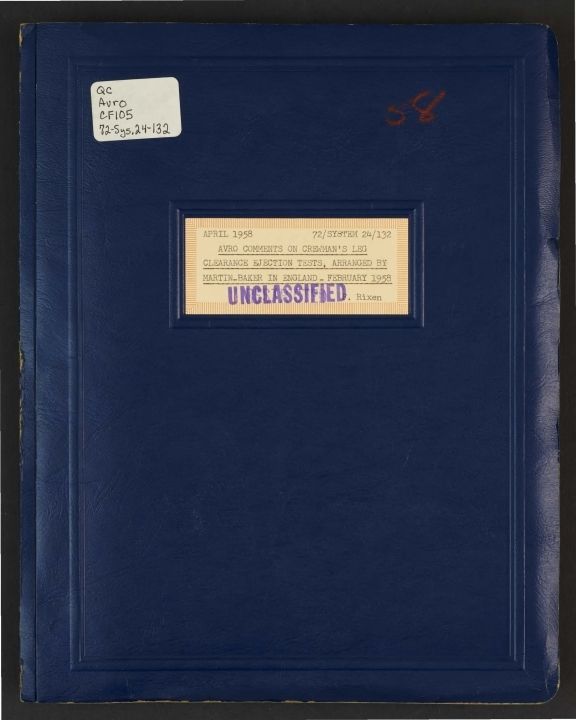 ejection test results arranged by Martin-Baker in England in February 1958. Names include K. Korsak, Fred P. Mitchell, F. Rixin, W. Farrance, C.J. Austin.