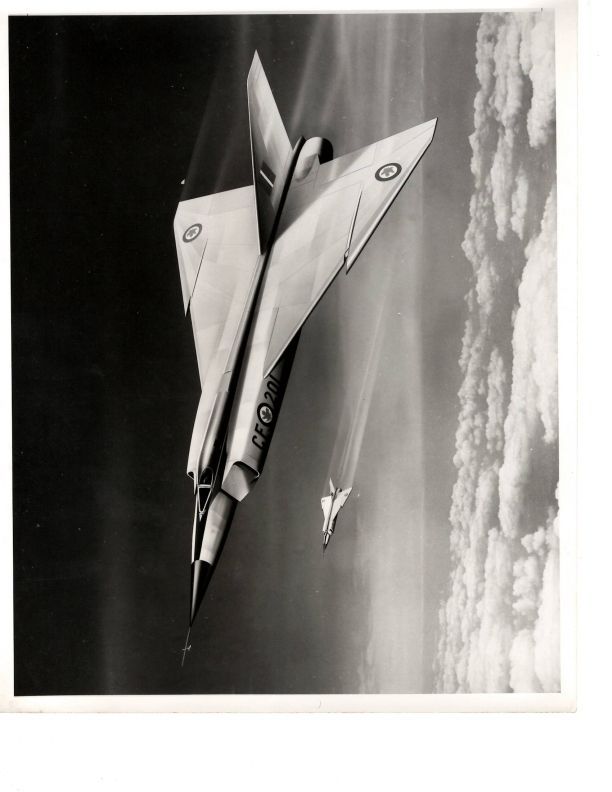 8 x 10" photo of a painting with Arrow 201 and 202 in flight. This is produced by the techical illustrators of the Sales and Service Department