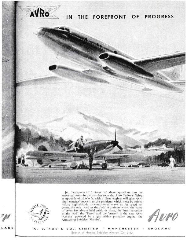 B&W Ads for Avro Tudor 8, SR-A! Fighter flying boat, Tudor 1 and others