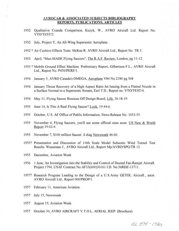 Listing of papers on Avrocar