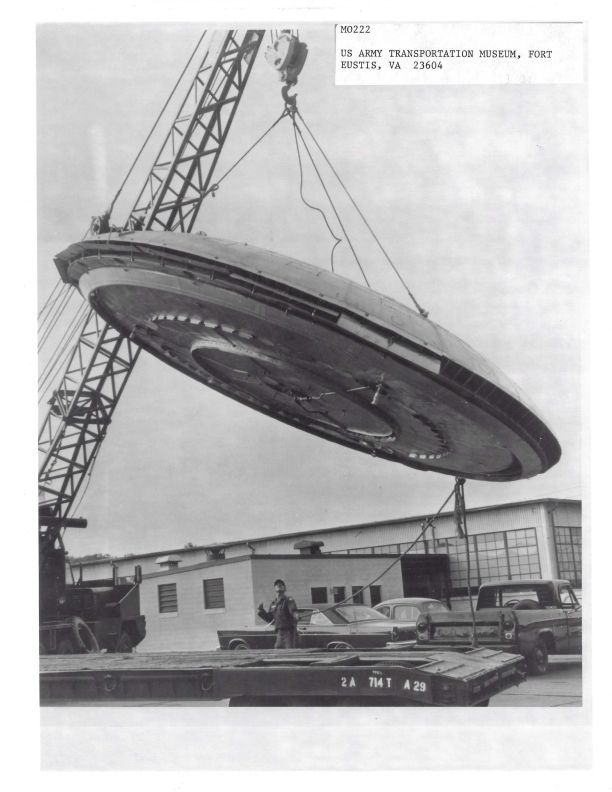 Avrocar being (un)loaded to/from U.S. Army flatbed