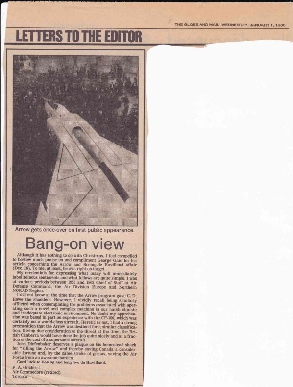 Retired RCAF officer explains why he is in favor of the cancellation of the Arrow