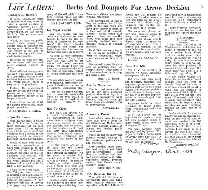 Letters to the paper expressing opinions for and against the cancellation. Names include C.T. Barton, Husband of Mr. Peel.