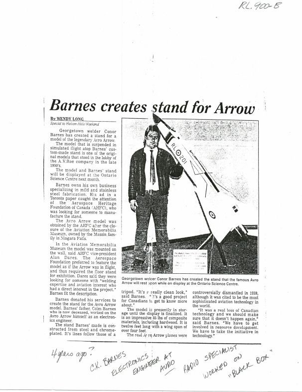 Welder son of former employee (Colm K. Barnes) makes a stand for a model that at one time sat in lobby of AV Roe in ate 50'sPublication Details