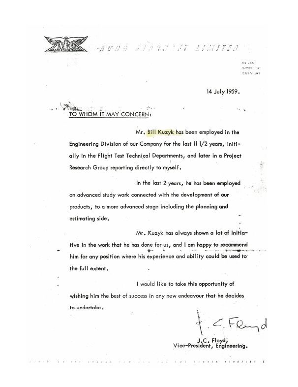 Bill Kuzyk reference letter signed by Jim Floyd