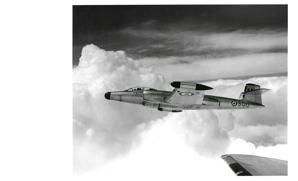 Black and White 8.5x11 Photo of CF-100 Canuck 18300 in Flight
