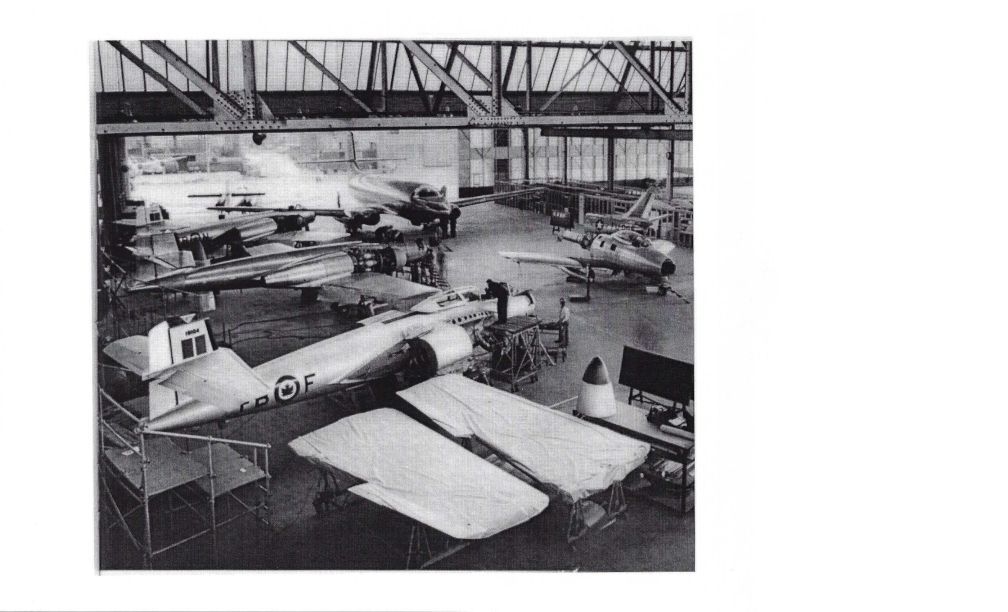 Black and White 8x10 Photo of Avro Assembly Hangar with CF-100, Jetliner and F-86 Sabre