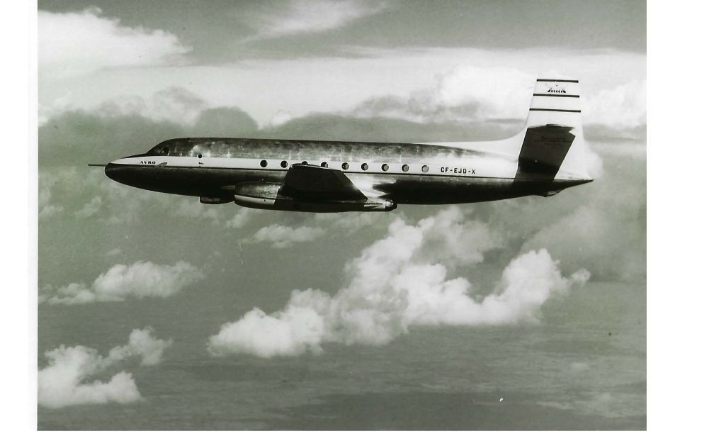 Black and White 8'x10 Photo of Avro Jetliner in Flight Prior to Final Paint Job