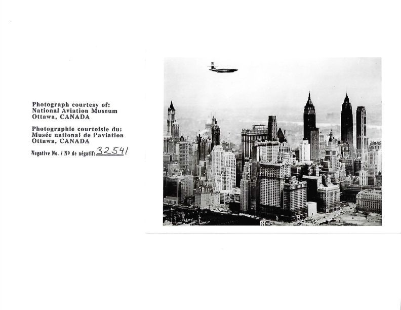 Black and White Photo of Avro Jetliner in Flight over Manhattan, New YorkGeneral Notes