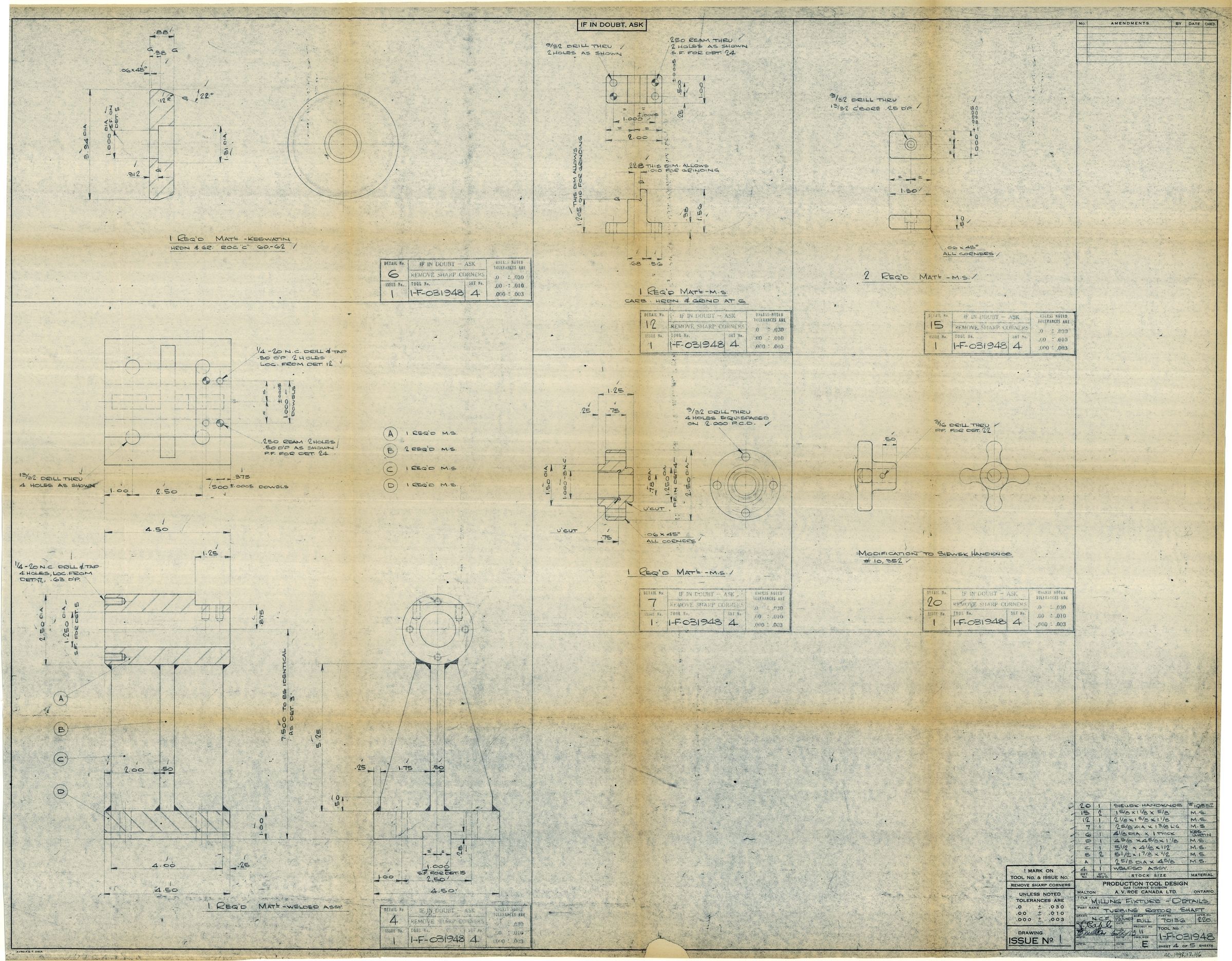 Blueprint of Milling Fixture - Details - Turbine Rotor Shaft -Sheet 4 of 5 Tool No. 1-F-031948 Part 70136