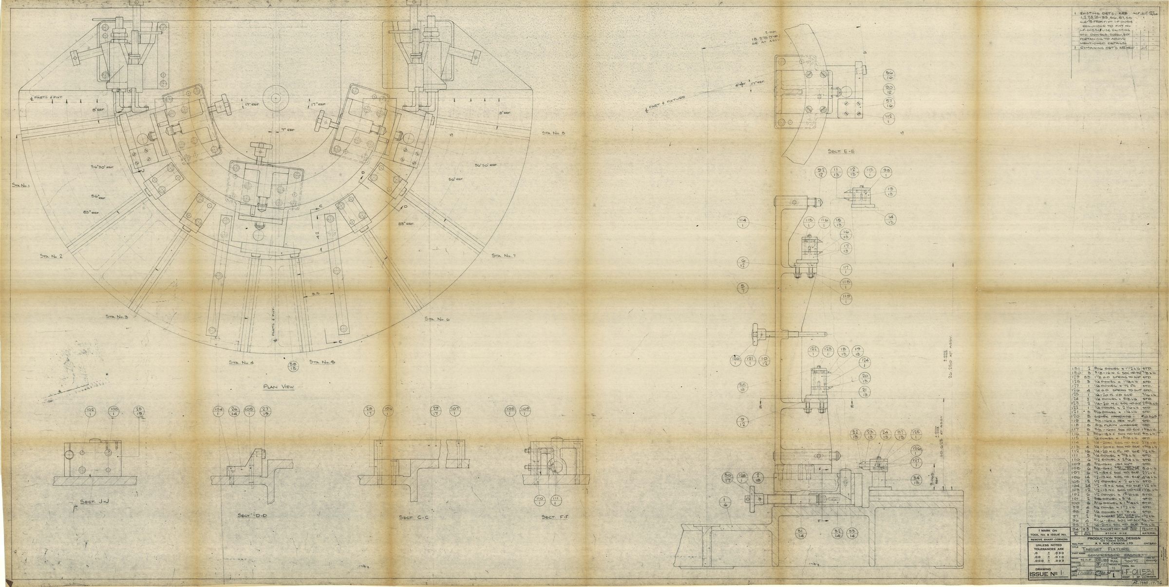 Blueprint of Target Fixture - Compressor Casing - Sheet 1 of 20 Tool No. 1-F-011531 Part 70072