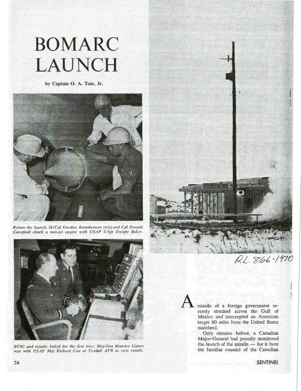 Pg 24-25 Article on launch of Bomarc Missle in Florida to intercept a drone successfully