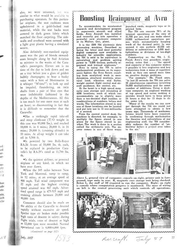 Page 77-Announcement that Avro has bought an IBM 704 electronic data processing machine.
