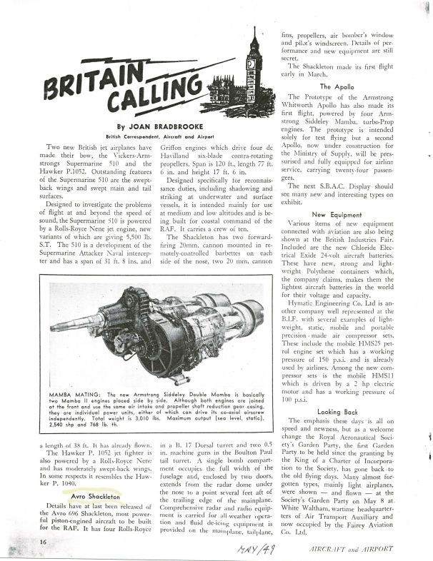 pg 16 Avro Shackleton - details released of the Avro 696 ShackletonPublication Details