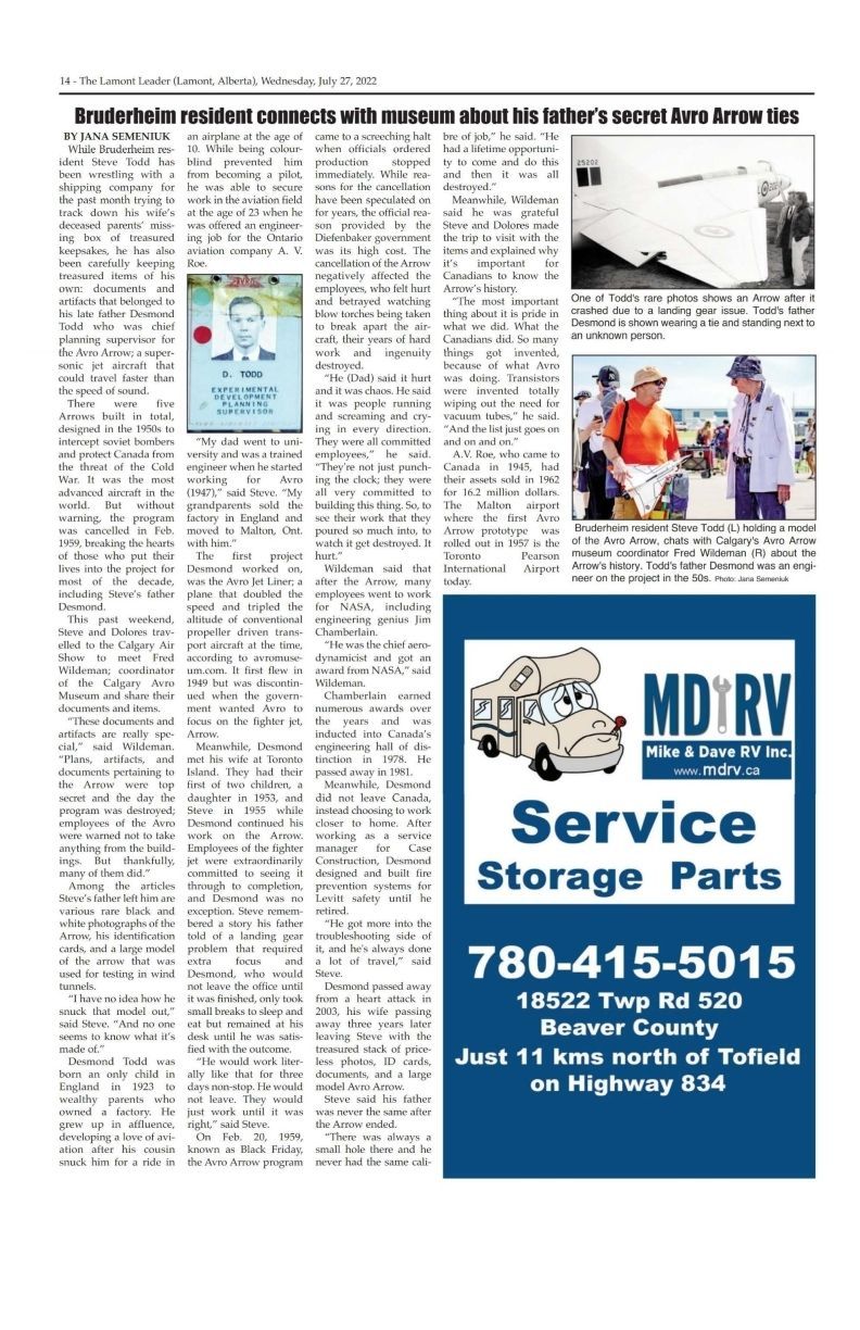 Bruderheim resident connects with museum about his father's secret Avro Arrow tiesEntry/Object ID