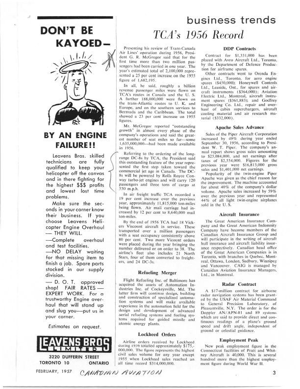 pg 3 - TCA's 1956 Record - Continued growth in passenger miles. DDP Contracts - awards contracts to Avro and OrendaPublication Details