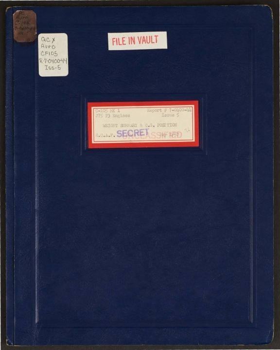 C-105 MK 1, J75 P3 engines: weight summary & C.G. position, May 1/57 Report # 7-0400-44 Issue 5Entry/Object ID