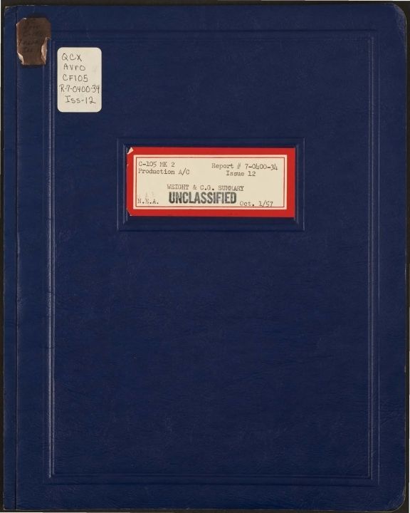 C-105 MK 2 production A/C: weight and C.G. summary, Oct. 1/57 Report No. 7-0400-34 Issue 12Entry/Object ID