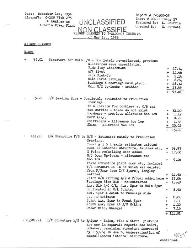C-105 with J75 PS Engines as Interim Power Plant - Weight changes to report 7-0400-05 Issue 26 - Issue 27